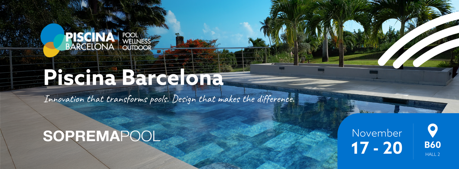 From 17 to 20 November, SopremaPool will be present at Piscina Barcelona 2025, one of the leading international trade fairs for the swimming pool, wellness, and outdoor industries. The event takes place at Fira Barcelona – Gran Via, Spain, and you will find us at Stand B60, Hall 2.